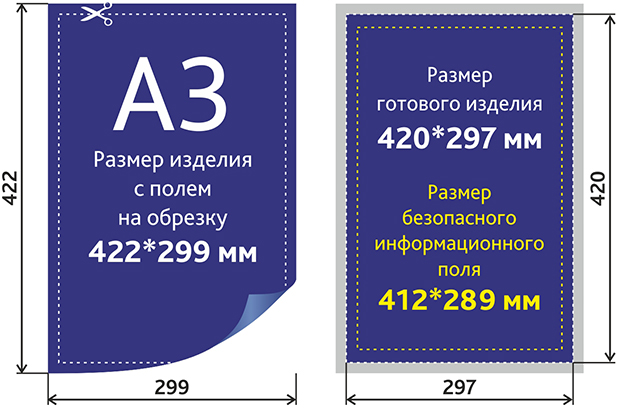 Размер афиши с припусками на обрез 422x299 мм (т.е. по 1 мм с каждого края);